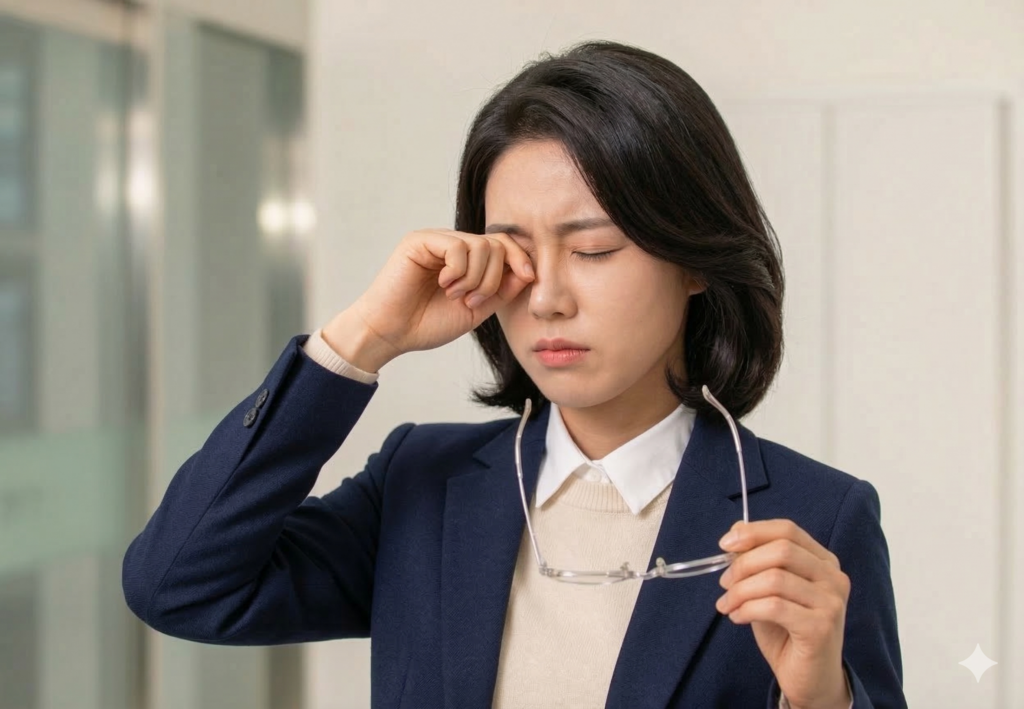 - 이물감: 마치 모래가 들어간 것처럼 눈이 따가움