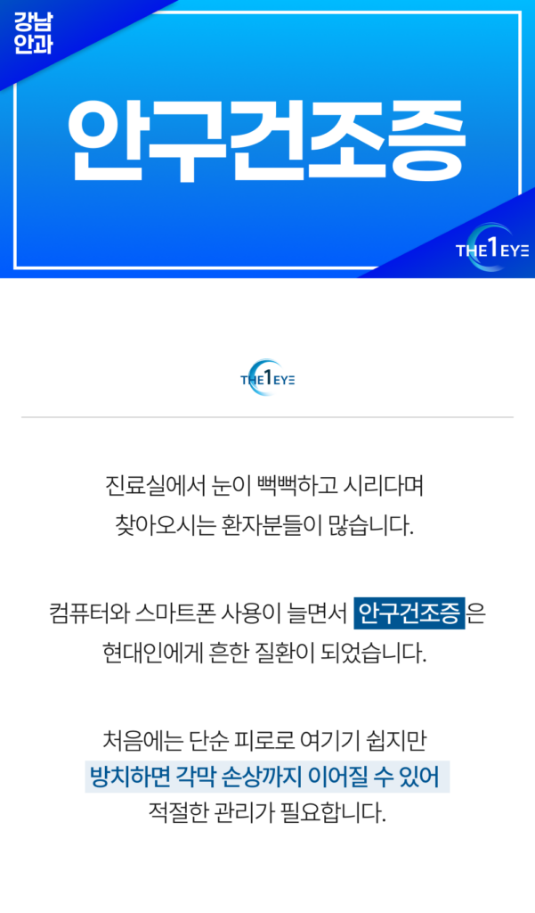 - 약물 복용: 복용 중인 특정 약물에 의해서도 안구건조증이 유발될 수 있습니다.