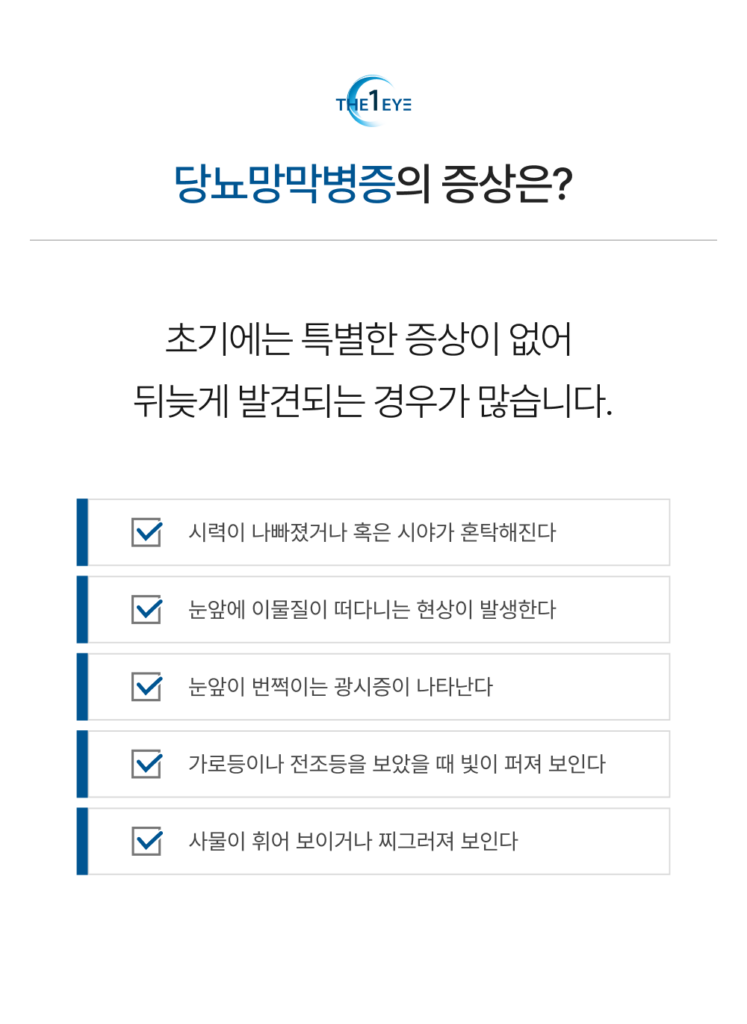당뇨망막병증은 초기 증상만으로 판단이 어렵기 때문에, 정밀 검사를 통한 확진과 체계적인 관리가 필수적입니다.